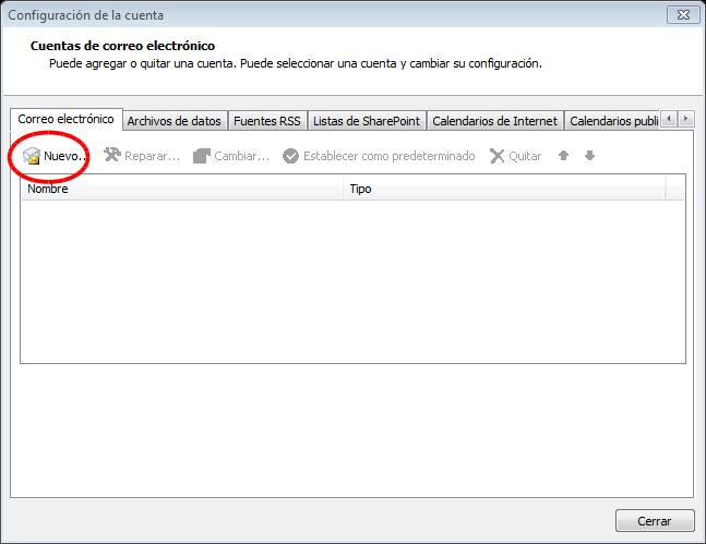 Una vez descargado iniciado, el programa puede preguntar si importa la configuración de Outlook no es recomendable hacerlo. Se debe añadir la cuenta rellenado las pantallas como se muestra en las capturas de pantalla
